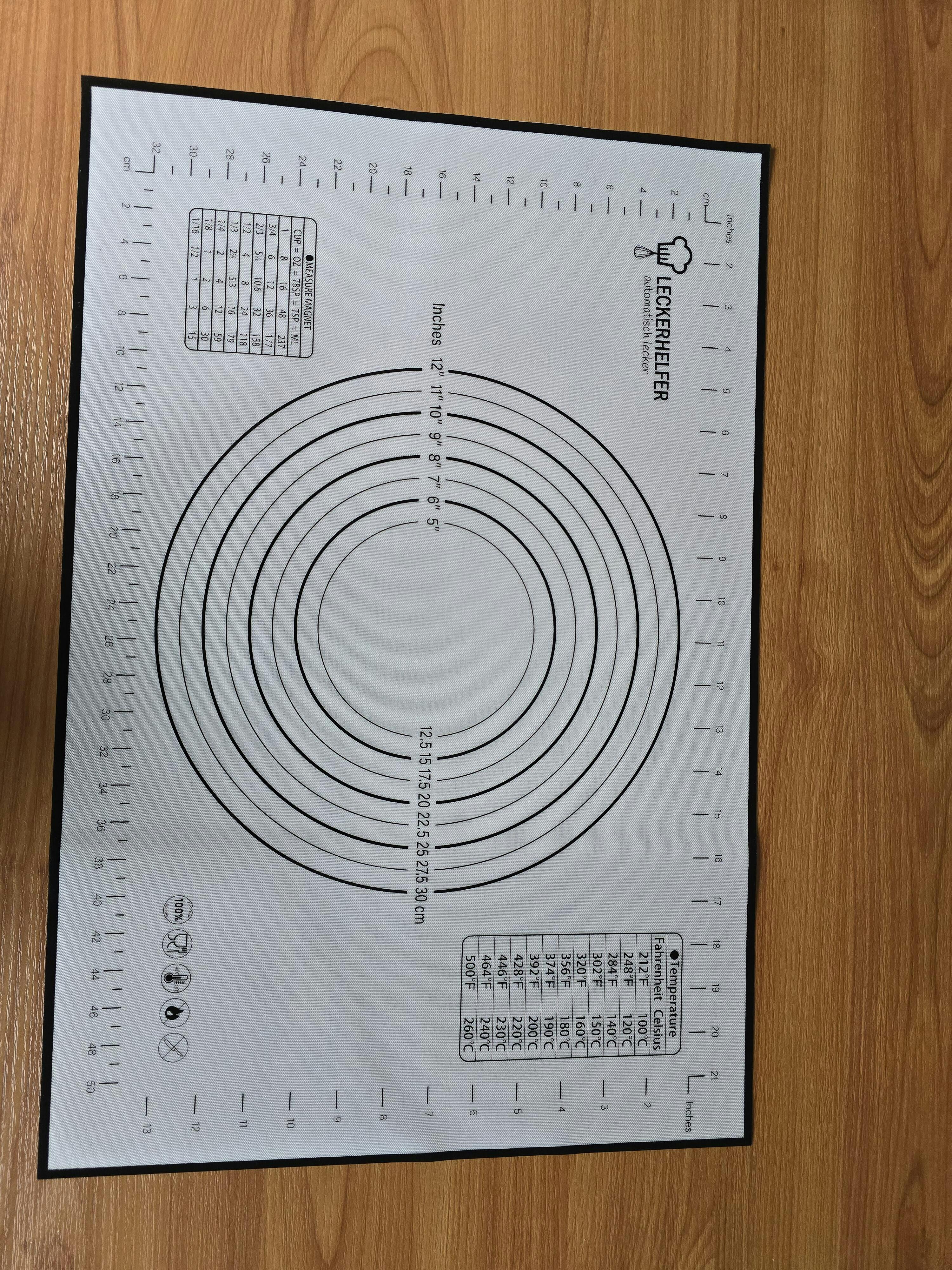 PRAKTISCH - Dank der aufgerdruckten Maßangaben lässt sich die gewünschte Teiggröße passgenau abmessen und ausrollen.